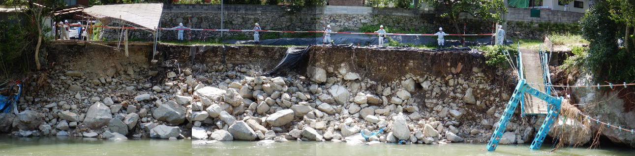 当社では、平常時の風水害による防災・減災対策の立案から、災害発生直後の国や自治体からの要請による被害状況調査、被災箇所の応急復旧、本復旧の計画、設計まで、総合的に風水害の復旧・復興事業を支援しています。