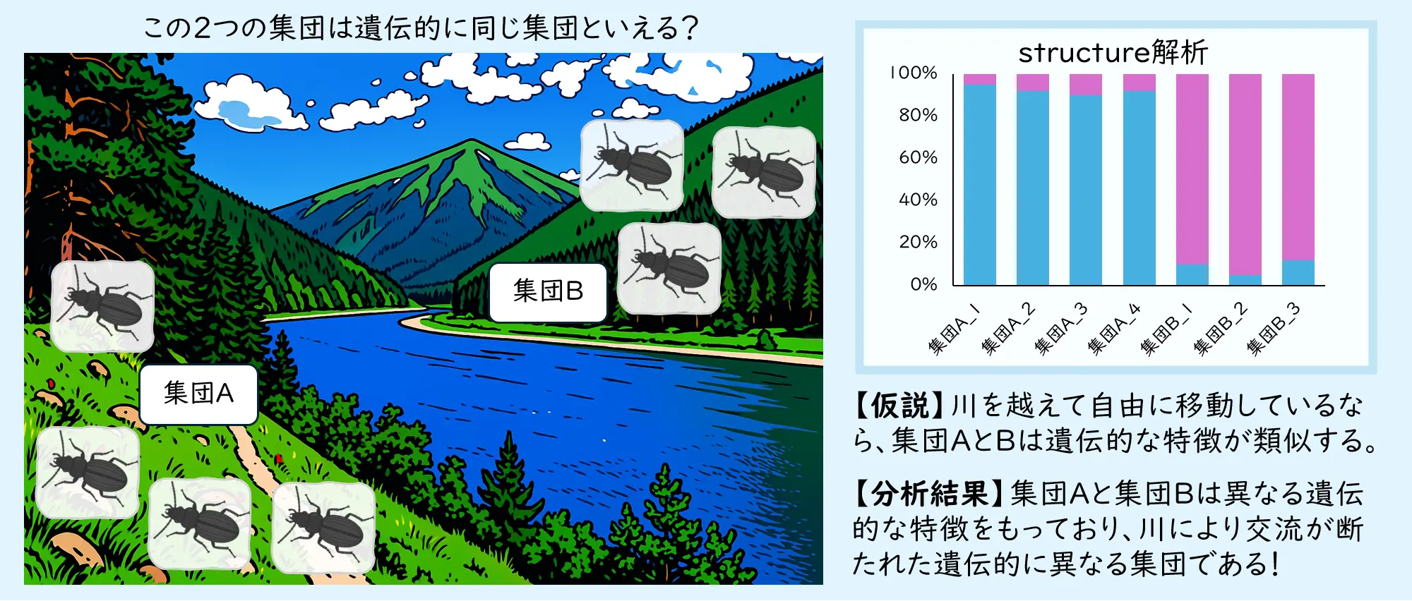 生物の遺伝的な違いを調べる方法は、従来ではマイクロサテライト分析(※)のような方法がありました。