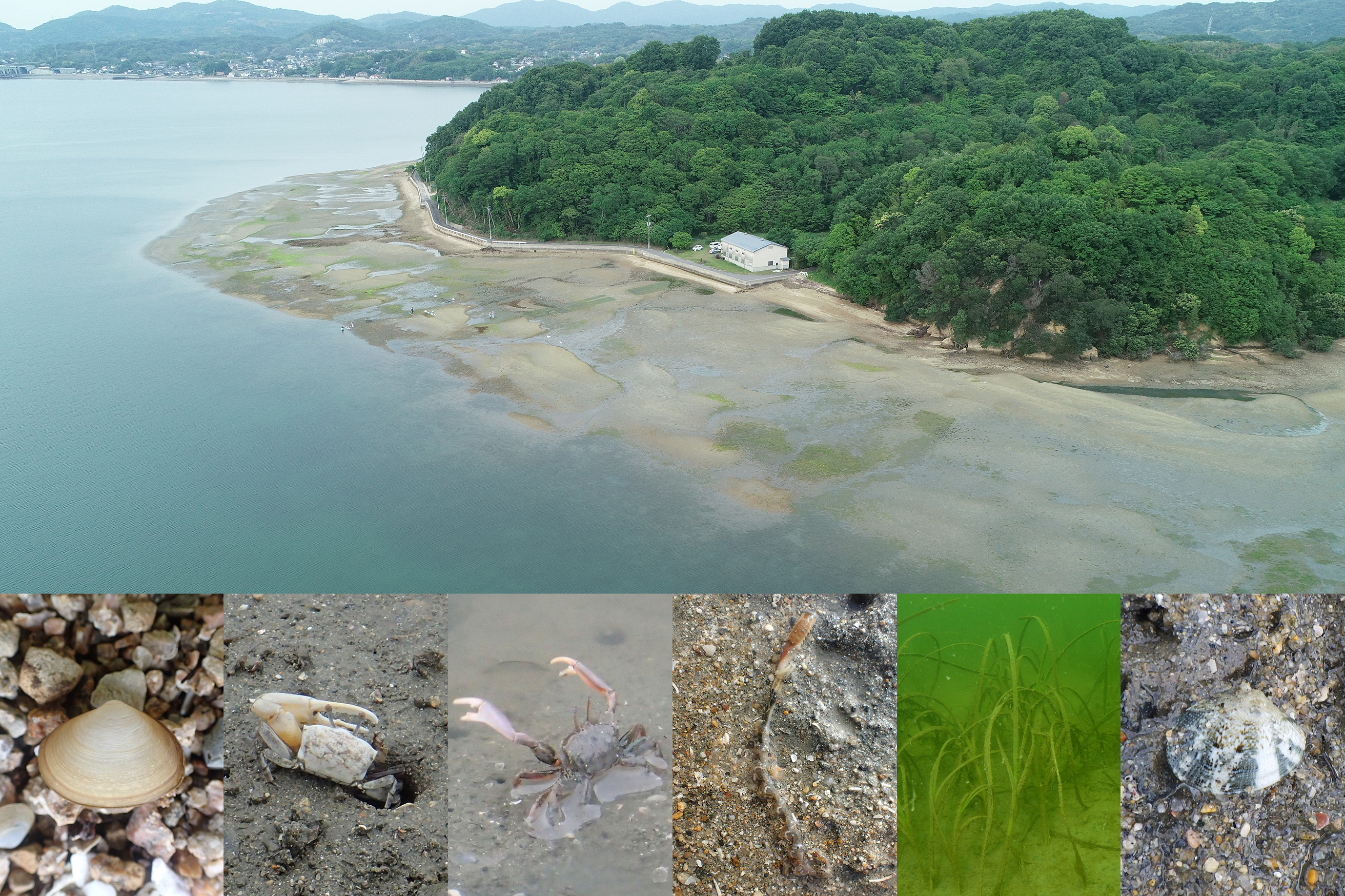 UAVドローンで撮影した干潟と生息している代表的な生き物たち